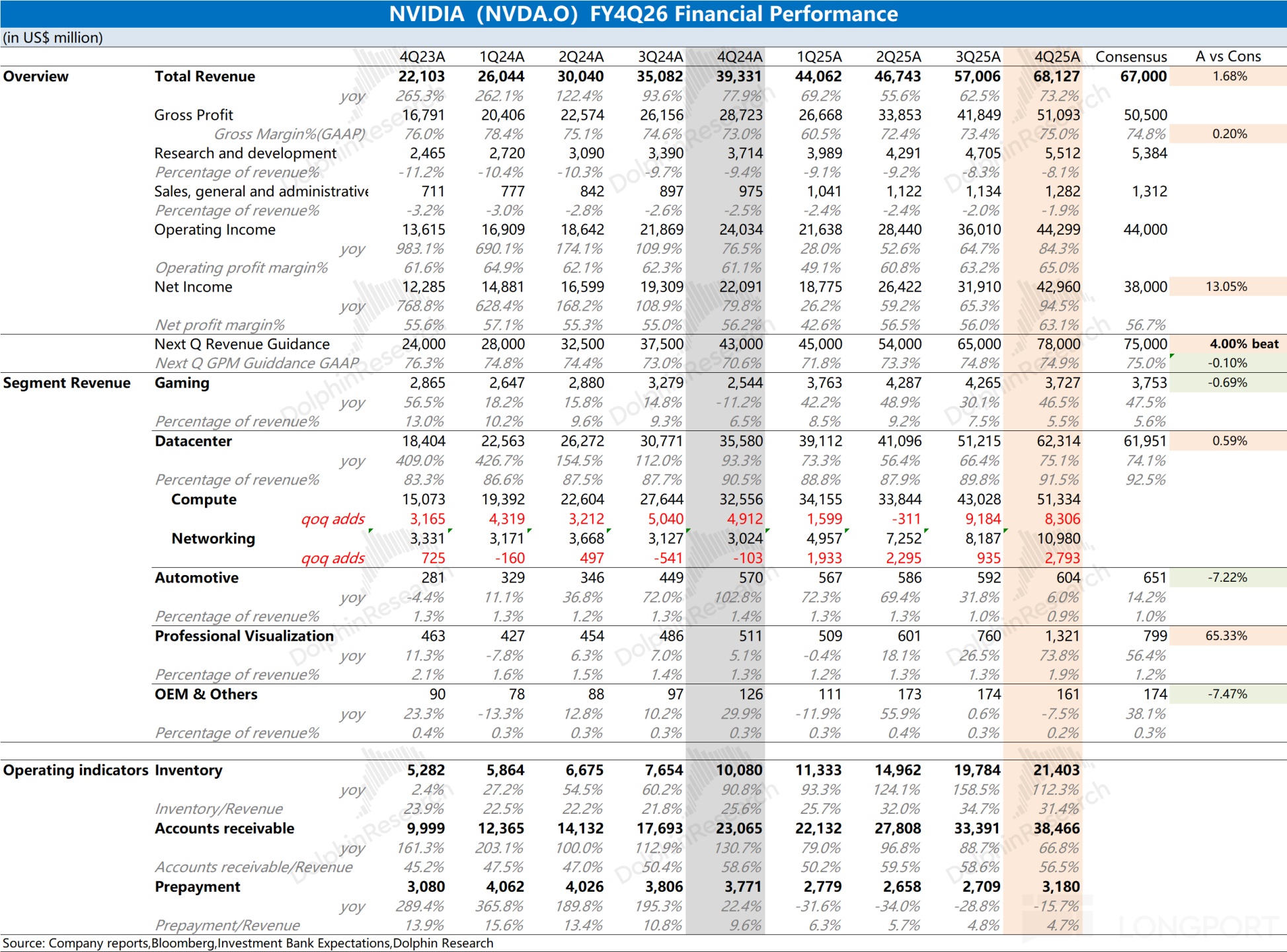Below is Dolphin Research's transcript of NVIDIA's FY26 Q4 earnings call. For our earnings take, cf. 'NVIDIA: Blowout Results vs. Cool Stock — Has the No.1 Universe Stock Lost Its Shine?'.
