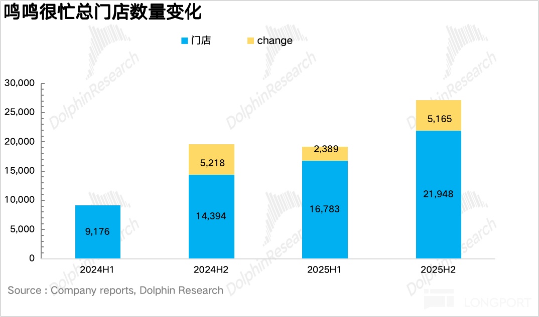 Net adds were 5,165 in H2 2025, clearly faster than H1, taking the total past 20k.In our view, the company loosened franchise policies in H2 2025 to sprint ahead of the 2026 listing, and as Zhaoyiming Snacks and Snacks Busy integrated, supply chain and ops connectivity improved, boosting franchise appeal.