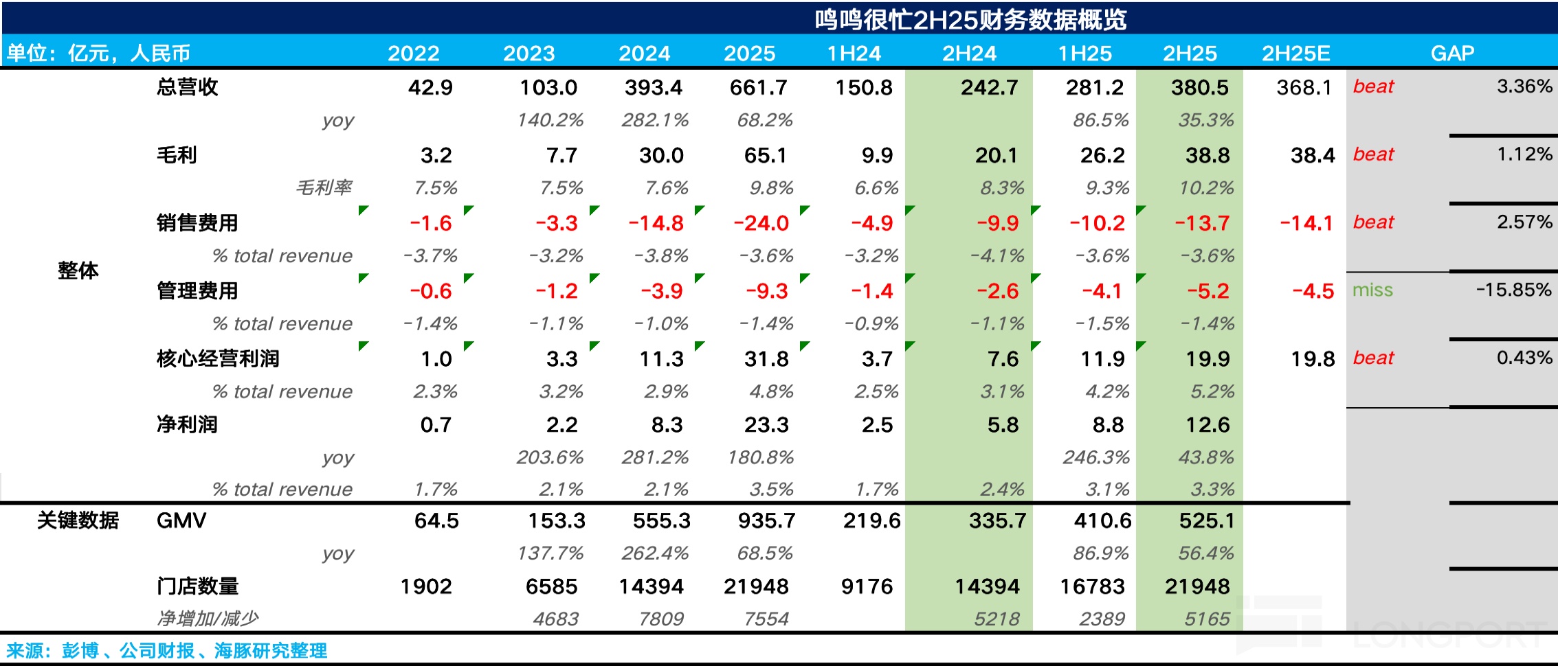 1) Revenue slightly beat. Driven by rapid store openings, H2 revenue reached RMB 38.1bn (+35.5% YoY), modestly ahead of consensus (RMB 36.8bn).That is roughly in line with last year's full-year revenue, underscoring that the company remains in a high-growth phase.