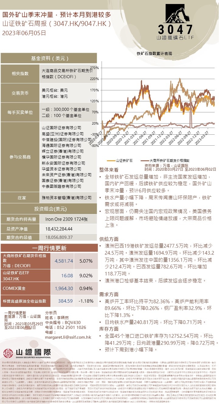 - 宏觀層面,仍需關注國內宏觀政策情況,美國債務上限問題緩解,市場避險情緒放緩,大宗商品價格上漲。$F SSIFIRONORE(03047.HK) $F SSIFIRONORE-U(09047.HK)