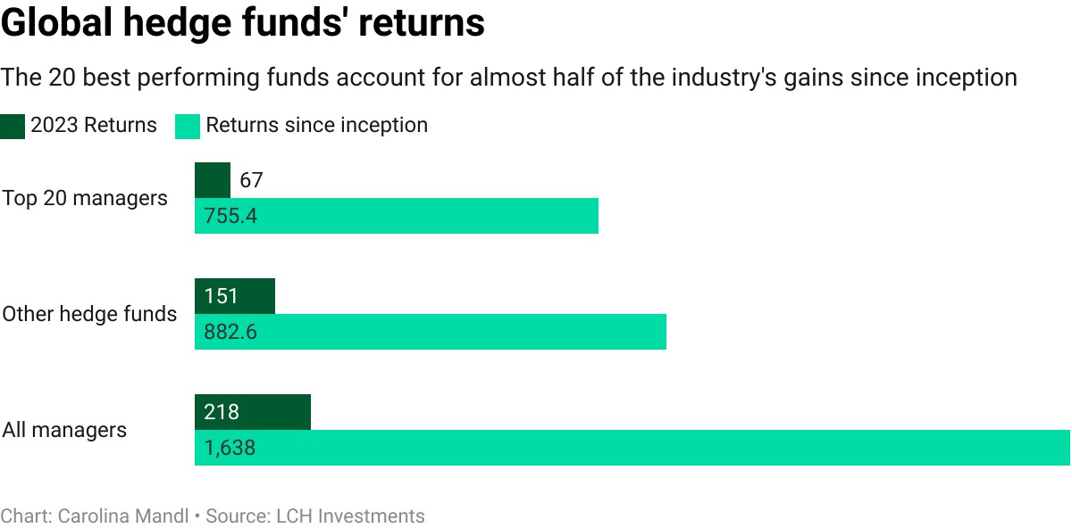LCH 发现,2023 年,全球顶级对冲基金为客户带来的收益增加了两倍