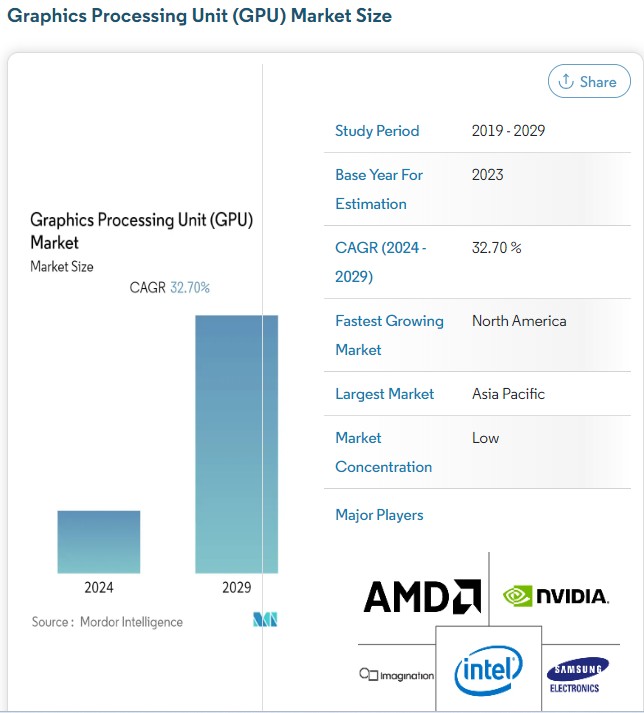 Mordor Intelligence 表示,GPU 硬件不仅用于渲染图像、动画和电子游戏,还用于一般性的计算目的,几乎部署在全球所有计算型设备中。个人电脑、笔记本电脑和新兴应用 (例如 AR/VR、高性能计算、人工智能、机器学习、区块链、加密货币挖掘、自动驾驶和高精度导航 (车辆、机器人) 的积极部署趋势,尤其是人工智能领域,未来将极大力度推动 GPU 需求。