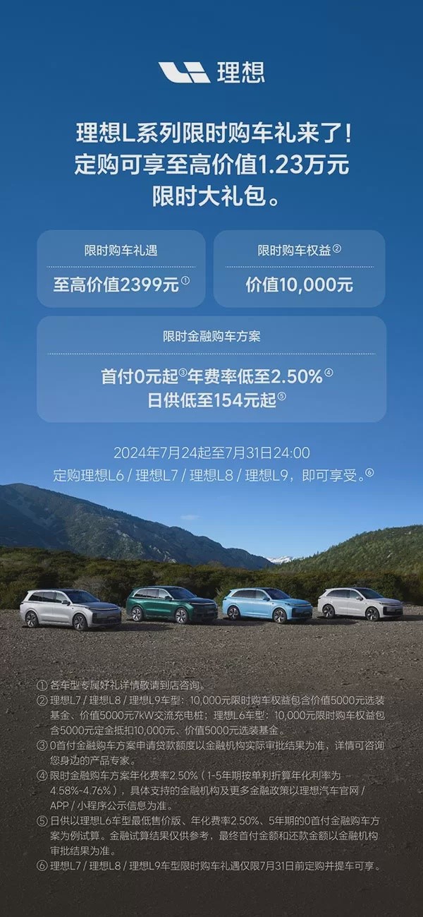 (2024 年 7 月 25 日宣布的理想汽车购车激励方案。)