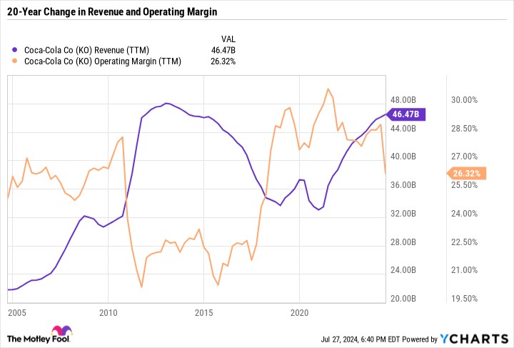 但最近,可口可樂不得不適應更為緊縮的消費者支出,並通過犧牲一些利潤率來換取更高的銷量做出了回應。這一策略取得了成功,因為可口可樂的營收已經反彈,而利潤率仍然可觀。該公司現在處於 20 年來最佳狀態——這在很大程度上歸功於管理層的有效執行和公司成功的業務模式。