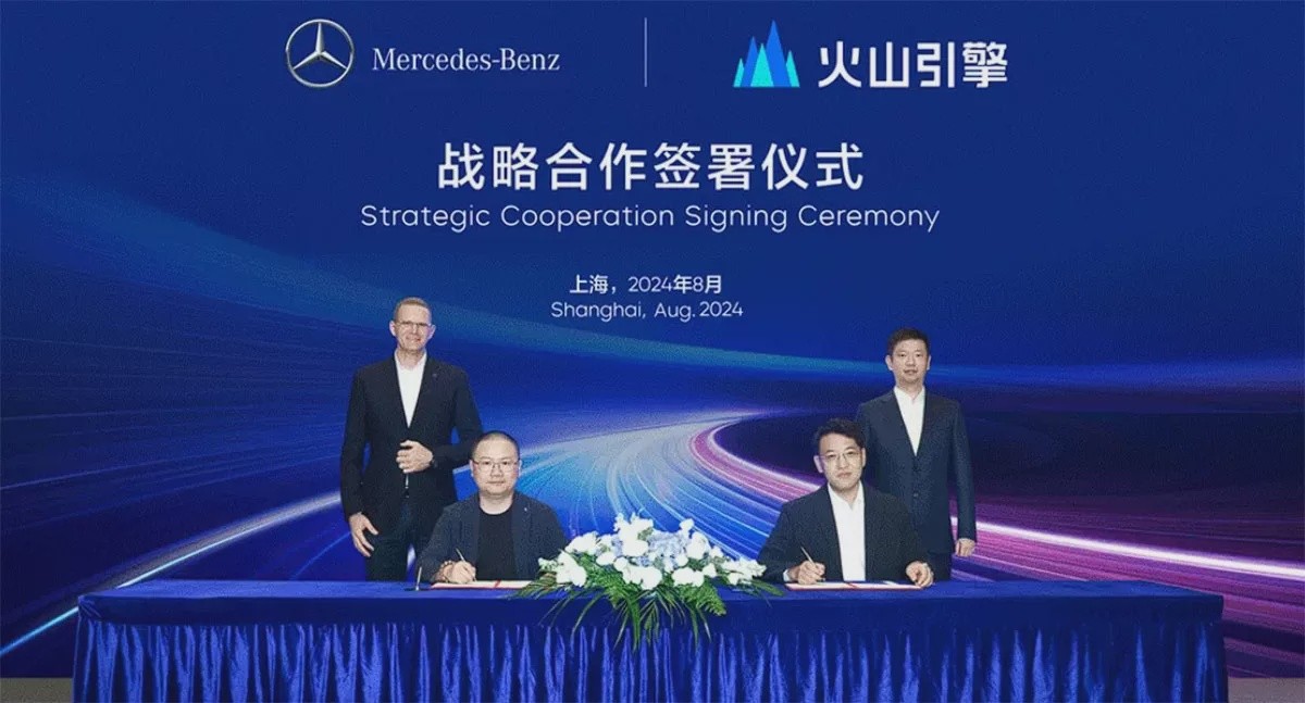 Mercedes-Benz and Volcano Engine signed a memorandum of strategic cooperation to work together in areas including large models, generative AI and big data, the ByteDance unit said in a statement today.