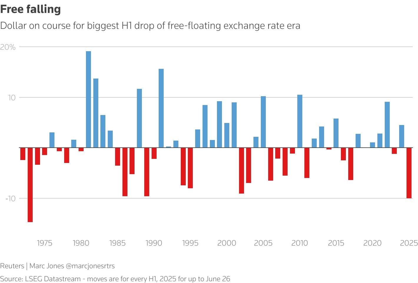 The impact has been most evident in the dollar, with the euro clocking gains of 1.7% last week. James Reilly, an analyst at Capital Economics, noted the dollar had fallen by more at this stage in the year than in any previous year since the U.S. moved to a free-floating exchange rate in 1973.