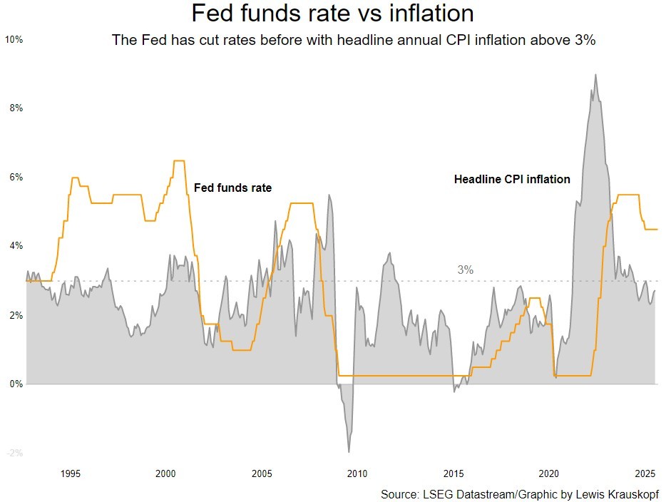 So the prospect of the Fed easing policy for the second time in a year with core inflation at 3% is a big deal – and may be yet another sign that the economic orthodoxy of recent decades is being tested or trashed. Take your pick.