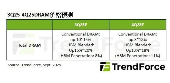 TrendForce 集邦咨询:4Q25 DRAM 价格延续涨势 服务器需求提前发酵、旧制程产品涨幅仍较大