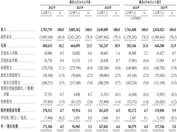 財務方面,於 2022 年、2023 年、2024 年及 2025 年截至 6 月 30 日止六個月,該公司收入分別約為 37.84 億元、30.85 億元、36.5 億元、20.34 億元人民幣;同期,年╱期內利潤分別約為 1.71 億元、9496.5 萬元、1.67 億元、1.18 億元人民幣。