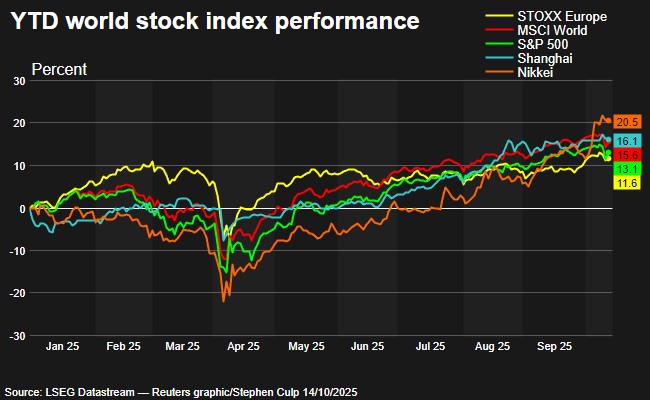 Gold broke past $4,100, boosted by safe-haven demand arising from the latest salvo in the Washington-Beijing trade spat. Spot gold (XAU=) rose 0.75% to $4,140.97 an ounce. U.S. gold futures (GCc1) rose 0.77% to $4,140.20 an ounce.