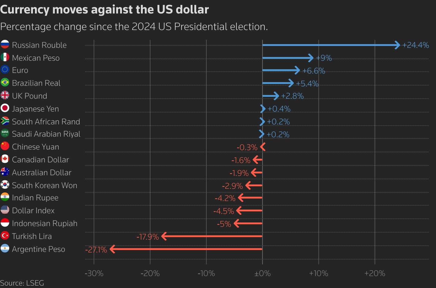 Currency moves against the US dollar