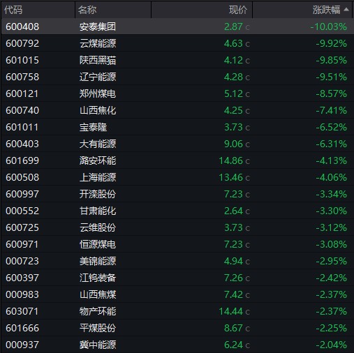 經過前幾日的持續大漲之後,今天煤炭股迎來調整,安泰集團跌停,雲煤能源、陝西黑貓、遼寧能源跌超 9%。