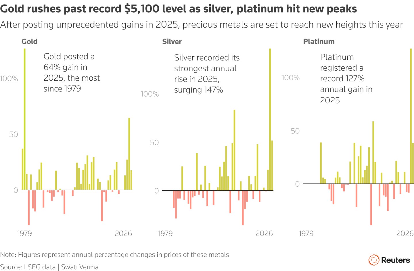 FACTBOX: How investors buy gold and what fuels the market GRAPHIC: Gold has more room to run as geopolitics, cenbank buying fuel gains, analysts say Gold rushes past record $5,100 level as silver, platinum hit new peaks