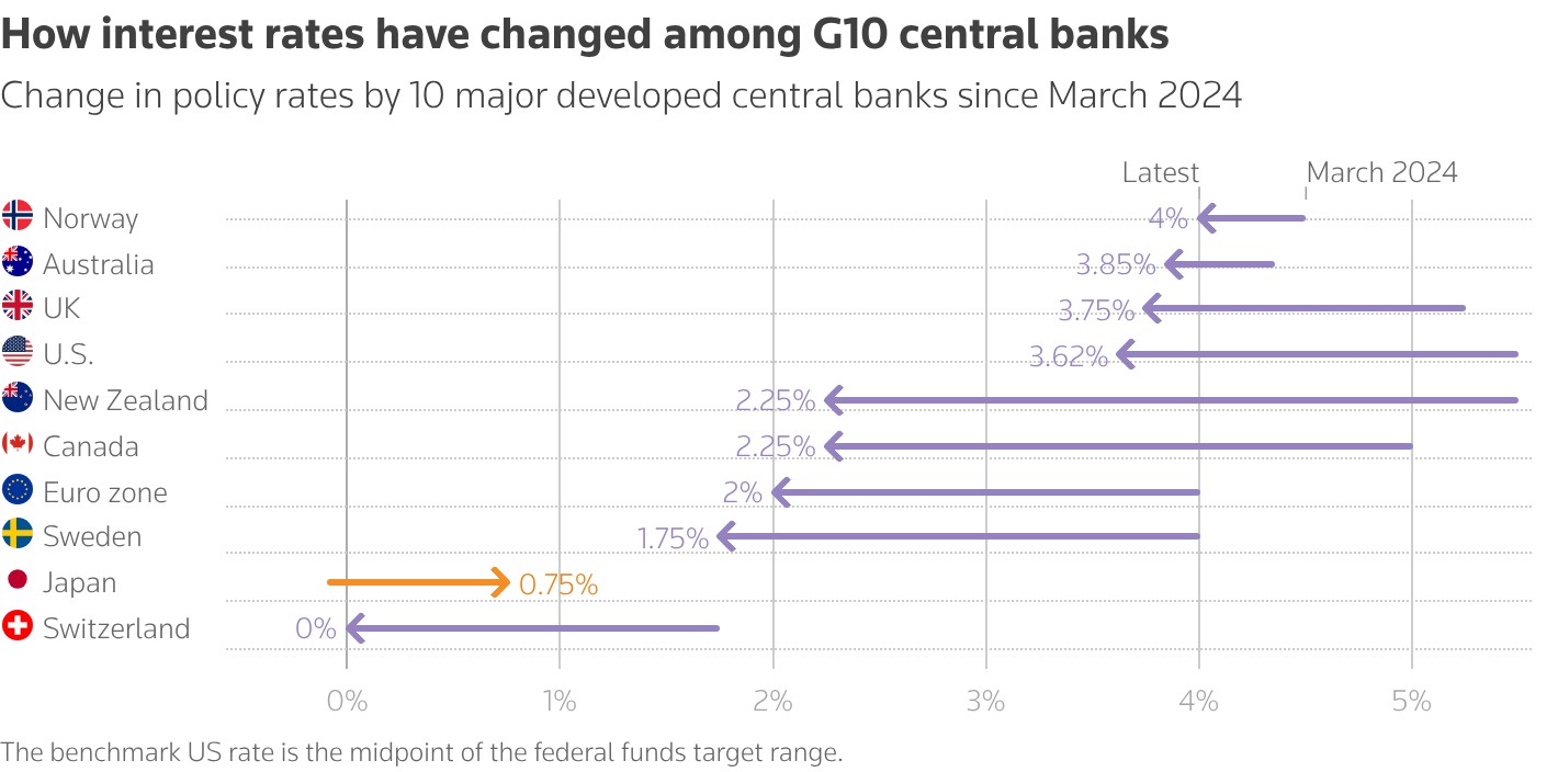 G10 中央銀行利率變化情況