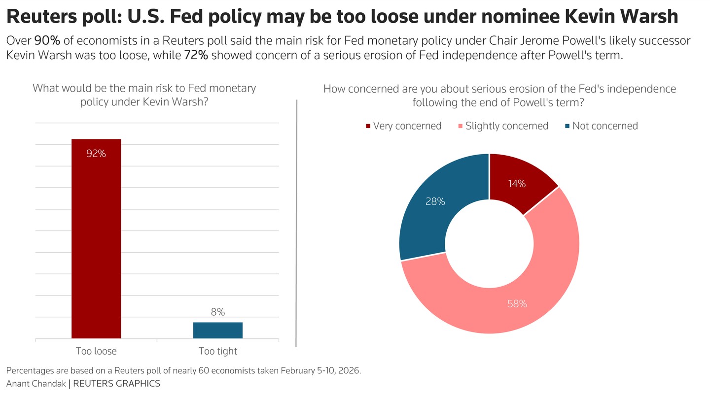 路透社調查:在提名人凱文·沃什的領導下,美國美聯儲政策可能過於寬鬆