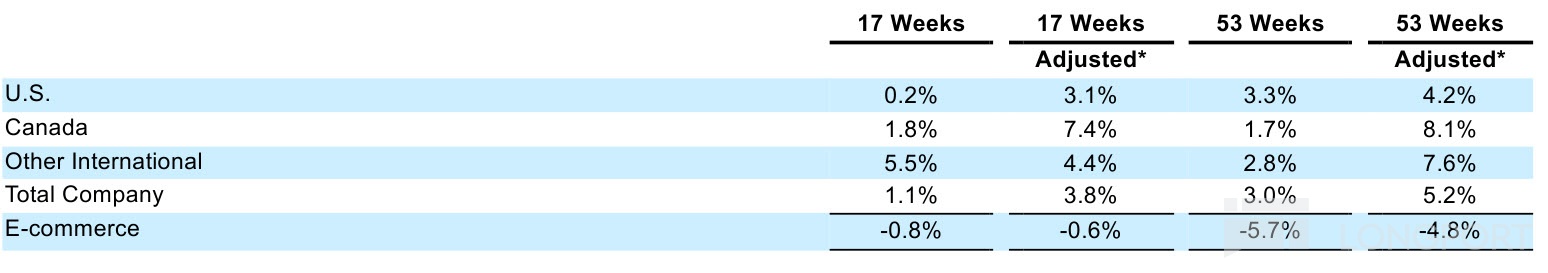 其中,美国地区同店销售额仅增长 0.2%,加拿大地区同店销售额增长 1.8%。