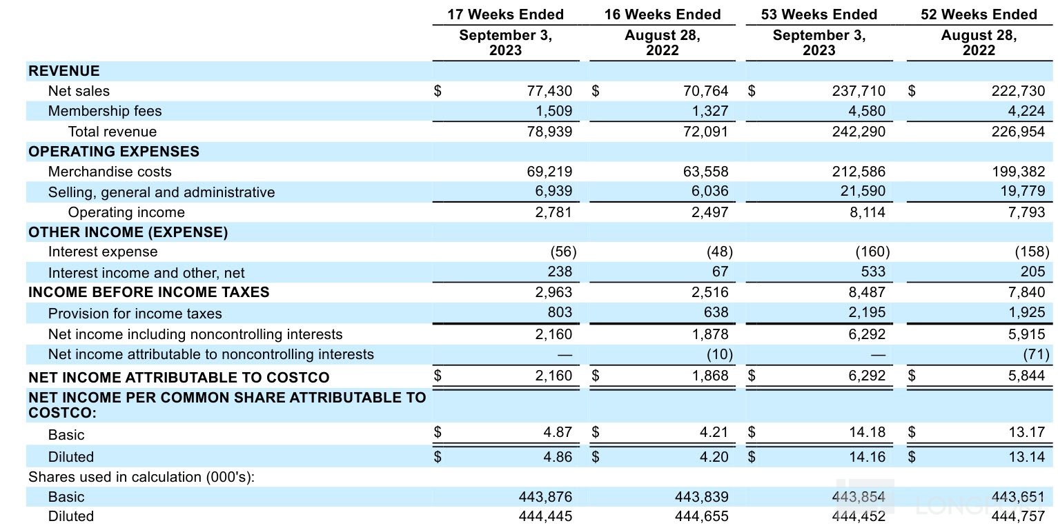 9 月 17 日,好市多 (COST) 公布 2023 财年第四季度业绩,业绩公布之后股价跌超 2%。