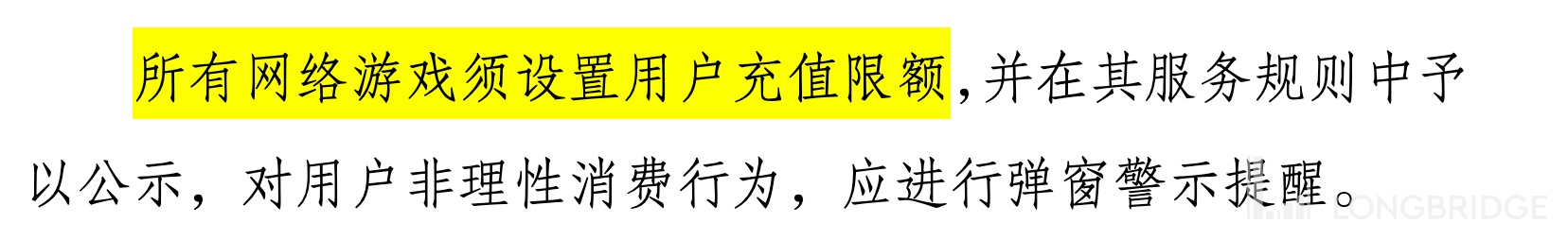 ——伤大 R 氪金,虽然还没规定具体额度,但动辄每日消费上万的情况大概率会进行限制。因此对高度依赖大 R 玩家的游戏影响比较大,这种往往在 MMO 类的游戏中比较多,对相关的公司影响较大,比如网易、完美。