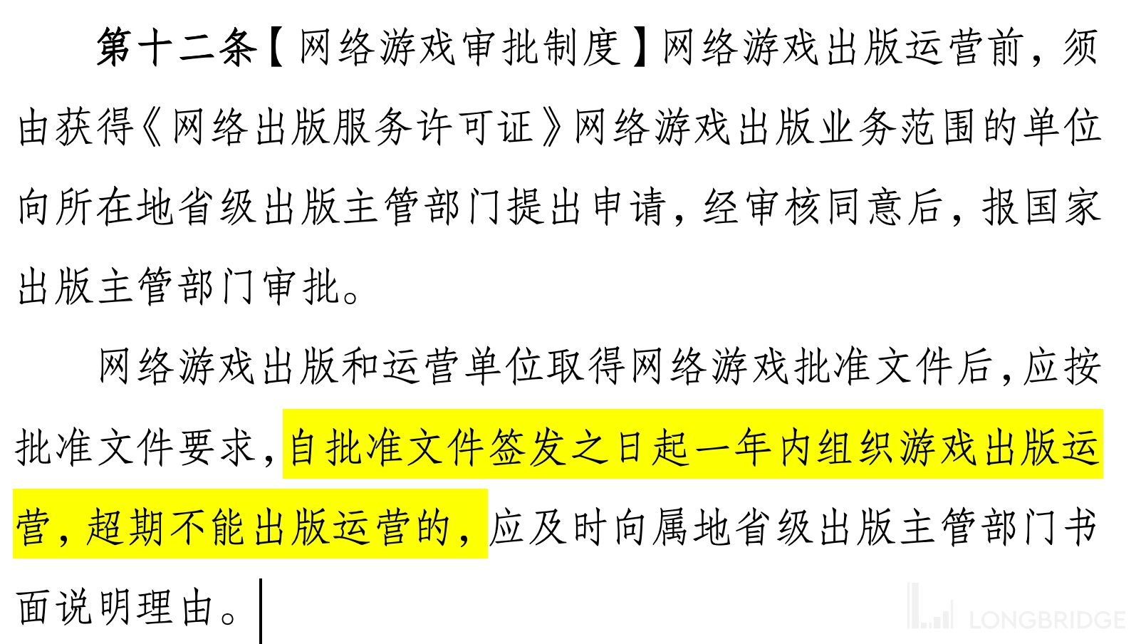 这条规定对于版号买卖、套用也并非新规,但之前的执行并非立即斩断,而是有一个逐渐收紧的过程。不过【一年有效期】的规定,对游戏企业规划游戏开发上线流程提了更高的时间规划要求。小公司因为对整体开发周期不可控,因此以往会选择早申请早获取,然后再慢慢测试商业化效果,以达到最优的情况再安排上线。在这个规定下,小公司因为与监管审核的沟通不多,对流程规划周期的预判能力较低。