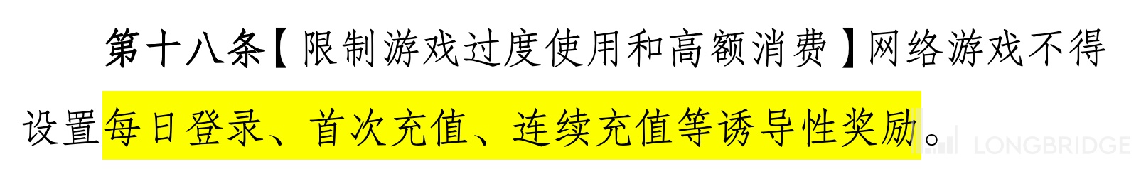 在海豚君列举的上述 7 点规范中,实际上真正有较大影响的主要是两点,1)限额消费;2)禁止每日登录、首充、连续充值的激励。
