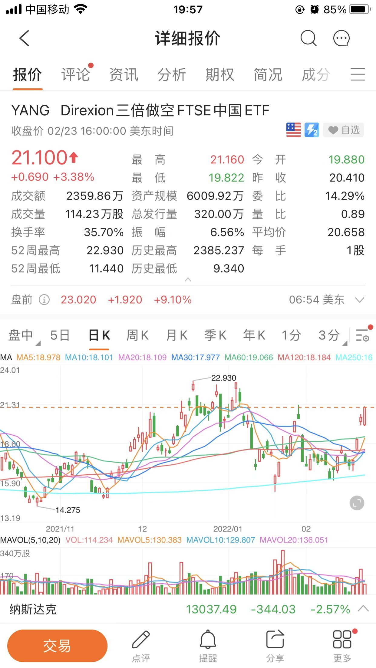 关注我:小散老俞$富时中国 3 倍做空 ETF - Direxion(YANG.US) $3 倍做空道指 30 ETF - ProShares(SDOW.US) $3 倍做空纳指 ETF - ProShares(SQQQ.US)