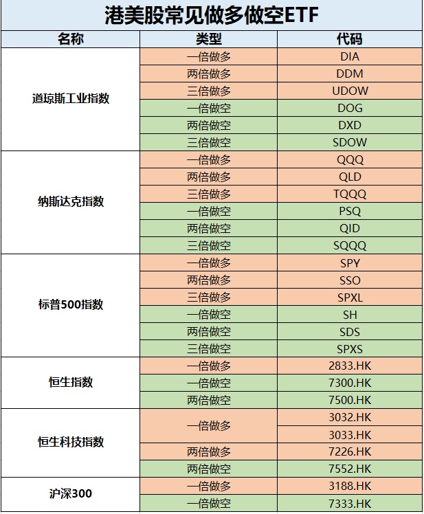 注意: 做多做空 ETF 在 A 股买不了,只有开通了港美股券商才能买,开通后跟平常买股票一样方便@王二狗子