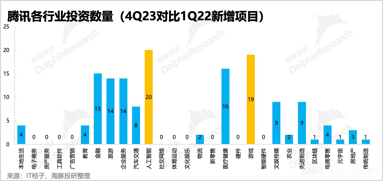 不过值得一提的是,虽然游戏 2021 年下半年之后版号停发了大半年,但仍然是这期间腾讯投资最多的领域。