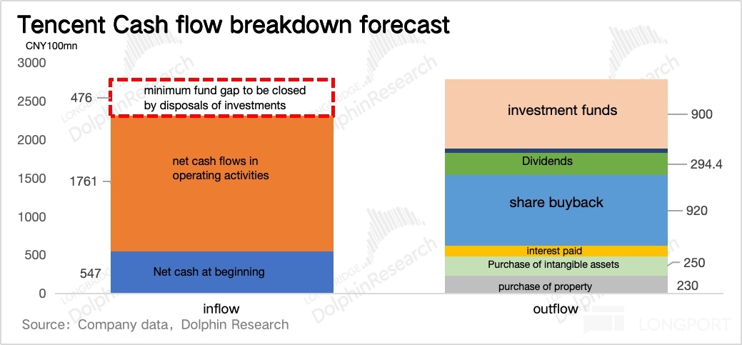 (4)对外投资:2023 年四季度的业绩电话会上,管理层透露,未来投资组合将继续 “自给自足”,对集团的意义,不再是资金使用方而是提供方。简单来说,就是腾讯之后的对外投资所用资金,来自于已有投资性资产的甩卖,并且会尽力做到投资收益(资产处置、分占利润)带来的资金流入高于新增投资耗用的资金流出。