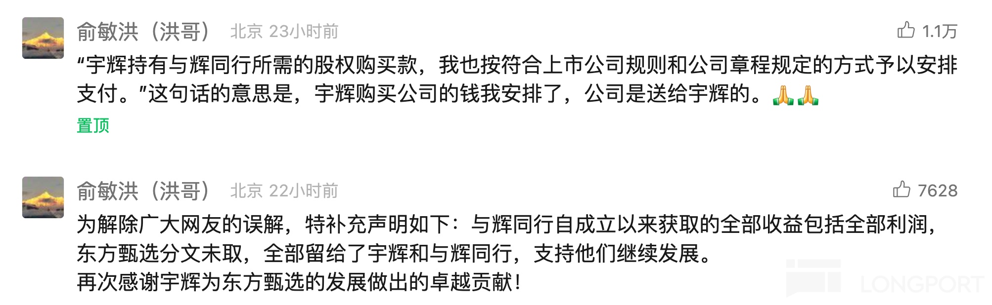 来源:老俞闲话《致东方甄选股东朋友的一封公开信》