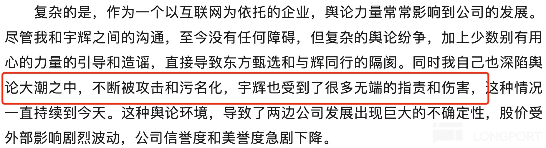虽然背后真实原因我们无从知晓,俞敏洪的自述中透出委屈、纠结、无奈。海豚君认为或许来自新东方的股东压力(直播频频出现雷点事件,影响市值稳定),以及东方甄选中的组织问题(集团老人对董宇辉的认可度、对董孙事件处理结果的不满等)。