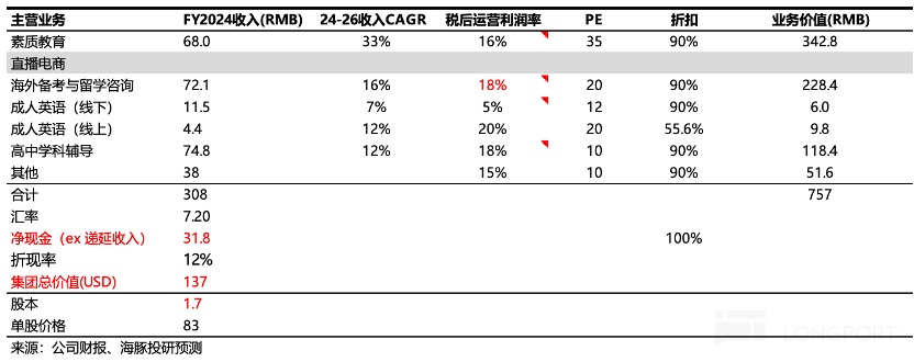 对 4Q24 总收入预期 +30%(USD),+35%(RMB)以上,其中还是主要靠素质教育等新业务拉动。但暑期对应的 1Q25FY,基于需求火热的现状,市场略微提高了增长预期。