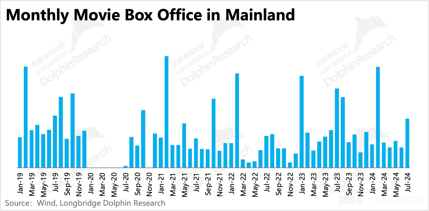 细分业务表现,2024 年上半年梯媒同比增速 7.3%,已经较去年下半年增速有明显放缓,后疫情红利褪去;影院广告则在低基数下同比增长 20.8%,仍然随着电影需求的回暖而回暖。但从票房走势来看,主要贡献在 Q1,Q2 因为优质供给较少,表现会相对较差。