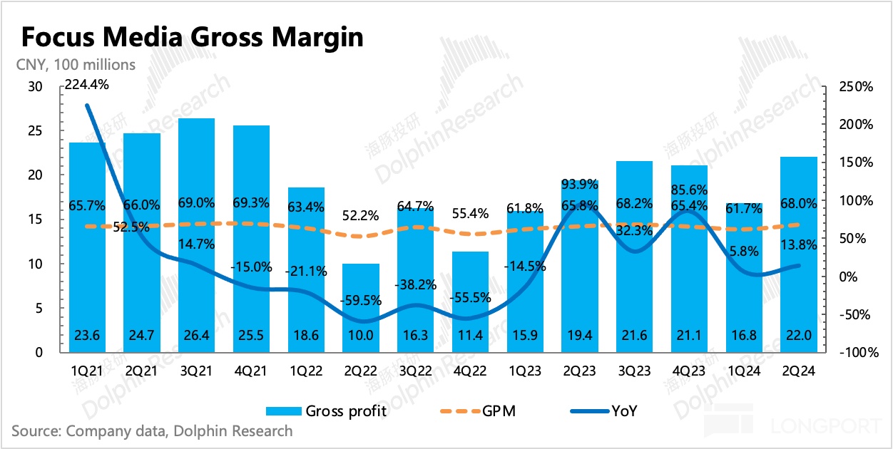 目前分众处于投入扩张周期,对未来利润率的潜在影响,也不能因收入超预期增长而忽视,毕竟当下的大部分资金还是对盈利表现更加在乎。但从毛利率在 Q2 的边际变化来看,梯媒爬坡速度很快,这一轮主要扩张的下沉点位本身成本就相对较低,随之增加的营销费用,可能也大多是初期拓客带来,后续仍有方式消化或减少。因此能否守住盈利水平,收入端的表现仍然是核心关键。