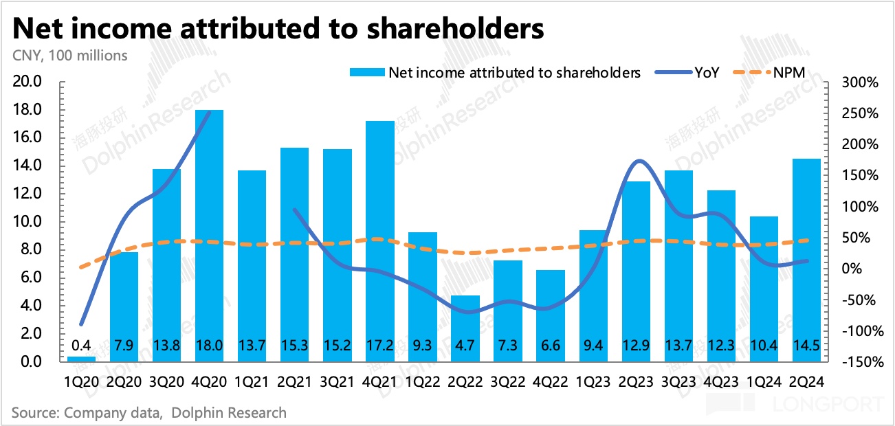 而实际上,如果单看 Q2 的增幅,其实也基本符合年初涨价 10% 的正常变化趋势,并不意味着宏观环境比我们想象中要好的多。一如海豚君在 Q1 点评中提及,当下的环境趋势复杂,今年有涨价、奥运以及电商竞争不减的相对红利,因此不能过分悲观。