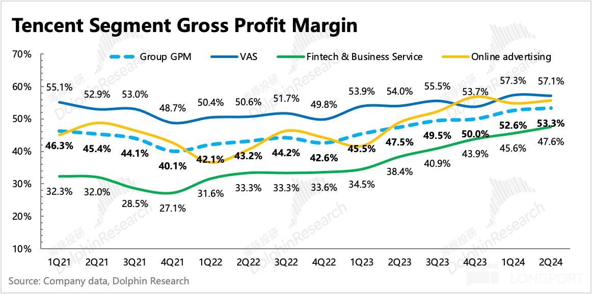 由于自身资源复用、业务结构变化(视频号广告、小程序游戏)带来的毛利率提升逻辑,已经持续讲了一年多,Q2延续改善趋势。