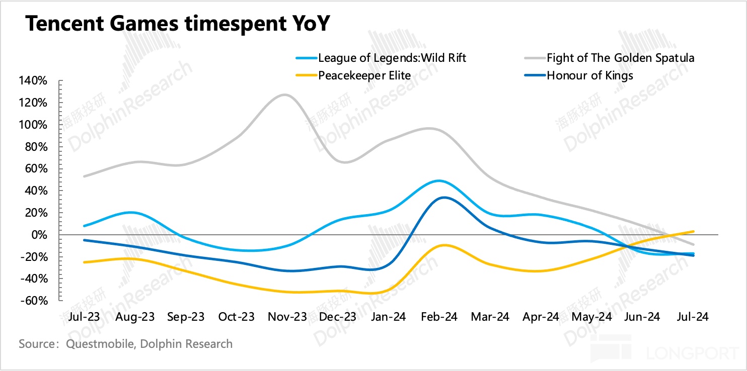 老游戏的表现上,因为是淡季,可能增长拉动不明显。但《和平精英》在持续运营优化下,用户时长持续好转,因此流水表现估计也有显著修复。