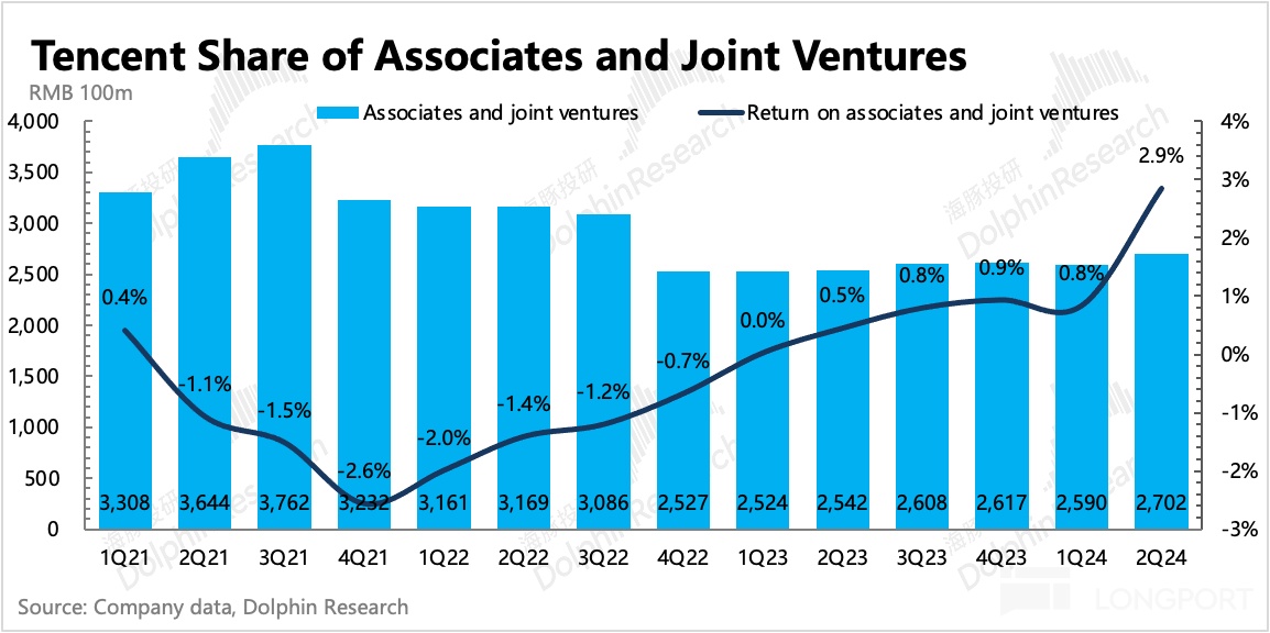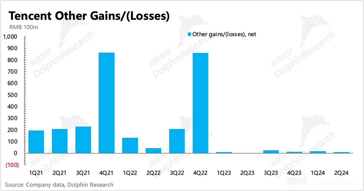 资产处置收益在年初明显增加后,二季度虽有放缓,但仍然存在显著增长。结合上季度公司表明的投资组合所需资金基本内部解决,不会再去动用投资业务之外的资金。回购压力+对AI等新技术的不缺位投资,可能会继续促使腾讯保持高于去年的投资性资产处置。