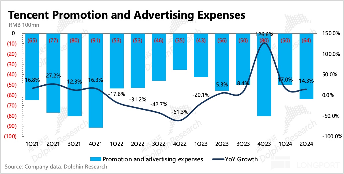 二季度腾讯的广告收入同比增速维持20%,高基数下,较一季度26%的增速自然放缓。虽然放缓,但在持续疲软的宏观消费环境下,这个表现已然不错。