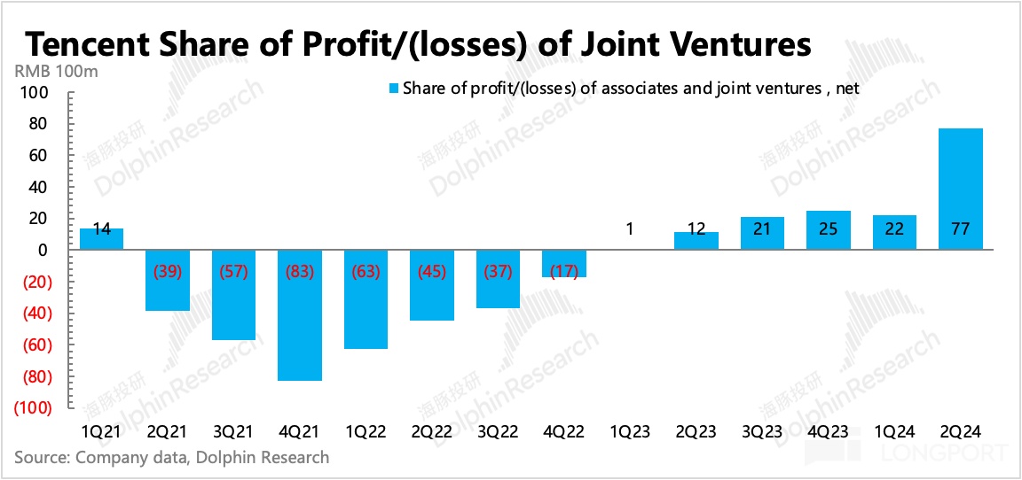 2)二季度分占联营/合营公司盈利77亿,表明被投公司盈利能力进一步向好,比如拼多多、快手等,可以相应期待一下相关公司的业绩表现。