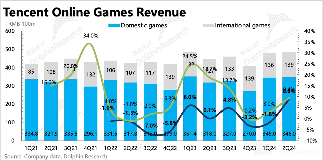 本地市场增长8.8%,稍高于市场预期。增长动力主要就是新游戏,一个是《无畏契约》一个是《地下城与勇士手游》(5月底上线,收入在二季度只贡献了40天)。