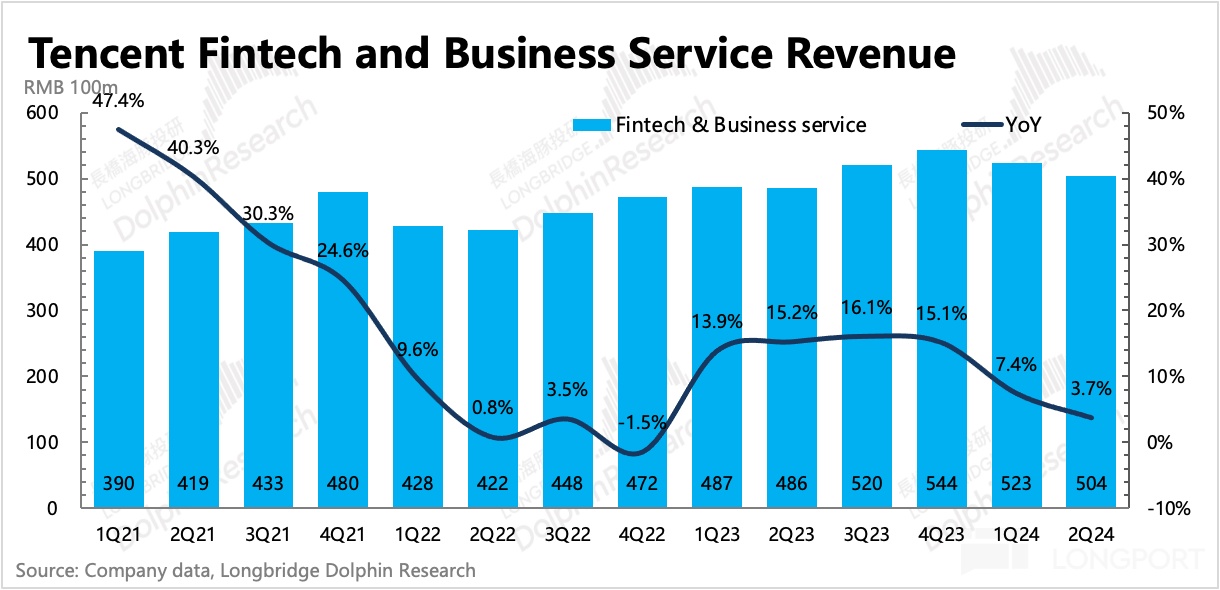 宏观压力下,线下支付进一步放缓。这不仅是体现在微信支付上,二季度整体社零表现很一般,再加上去年疫情刚结束需求释放带来的高基数,央行披露的第三方支付机构备付金直接同比下滑了。