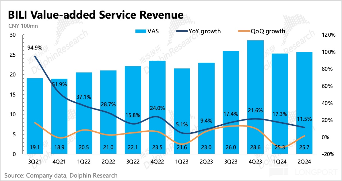 二季度增值服务同比增长 11.5%,增速进一步明显放缓。海豚君认为,增速放缓可能主要还是直播大赏表现不佳,这与同行表现也比较贴切。