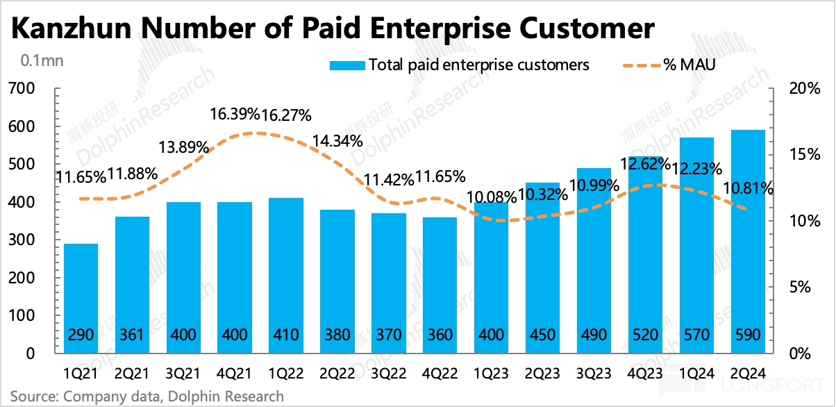 从付费企业账户数变化也能看出,二季度付费企业账户相比一季度只增加了 20 万,单季增幅是疫情放开后最低水平。