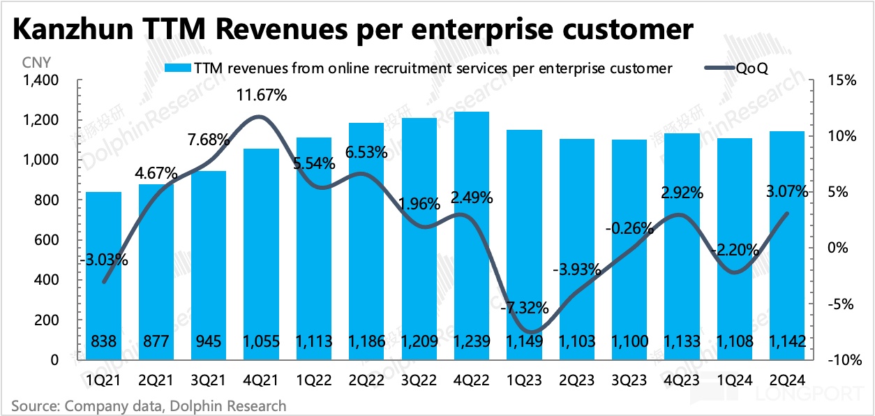 二季度隐含的企业平均付费金额环比上浮了 3%,除了反映去年底对部分景气行业进行了一波涨价外,海豚君认为主要是不同企业贡献收入结构的变化。