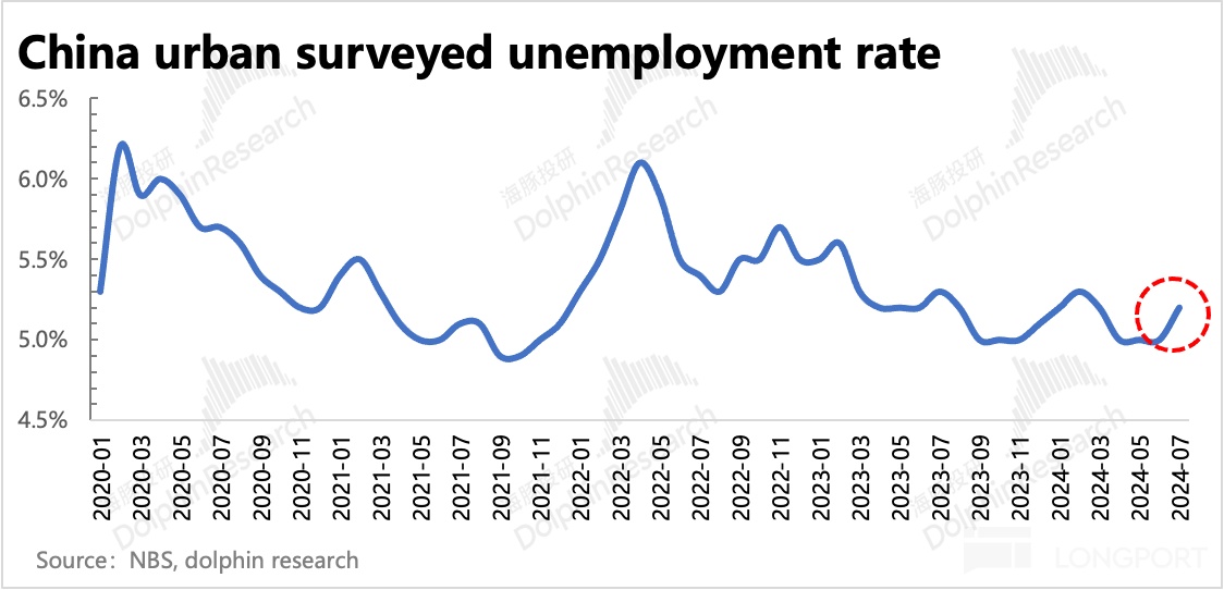 但很快,随着电商卷低价预备大干一场的 618 实际交易额低于预期,当月社零、PMI 等经济数据的再次疲软,再加上今年毕业季更多的应届生(高校毕业人数同比增长 2%)涌入就业市场,更是加剧了供求关系的不平衡,终于 BOSS 招聘线上流水的高频数据,也发出了走弱信号。随着而来的,就是 7 月底管理层下调全年流水指引。