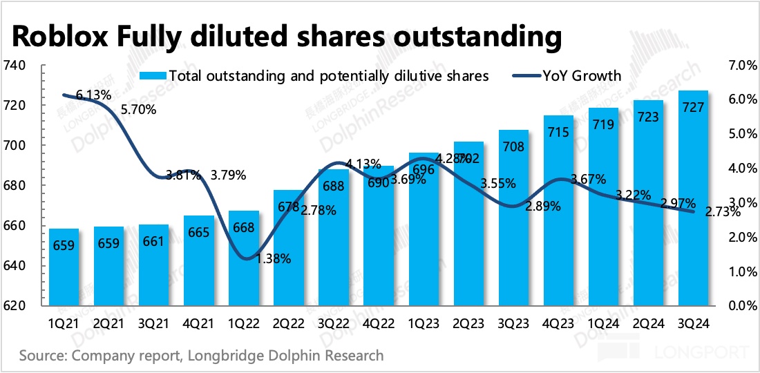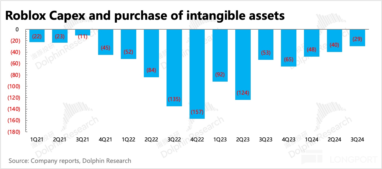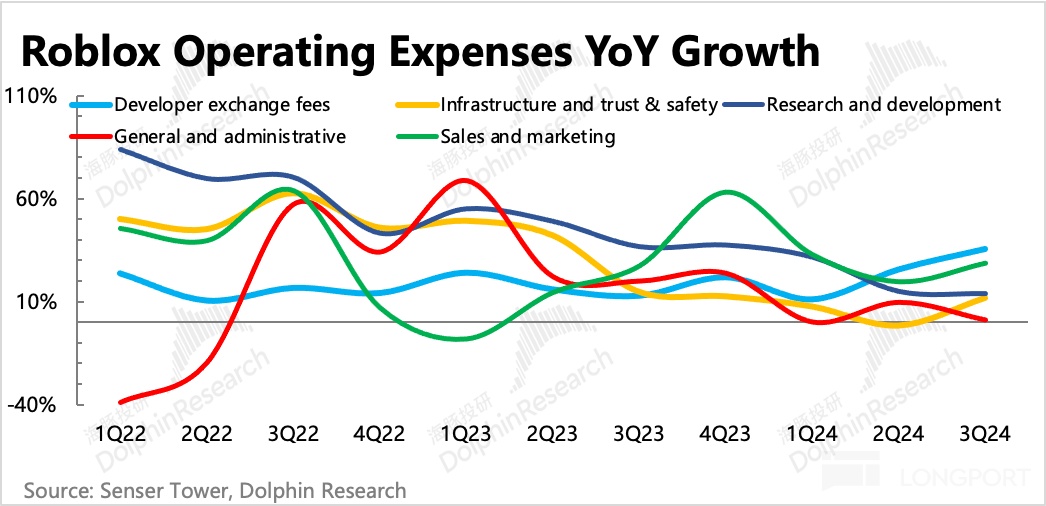 但后者涉及儿童安全的问题确实存在,我们在前文也提及,三季度关于信任安全的费用有明显的增长,随后近期 Roblox 就推出了家长限制儿童使用的多个功能,因此这一类相关的增量投入预计还会继续。但海豚君认为从 Q4 指引以及公司对利润率的中长期愿景来看,Roblox 还是希望进一步收缩整体支出来提高变现效率的目标的。