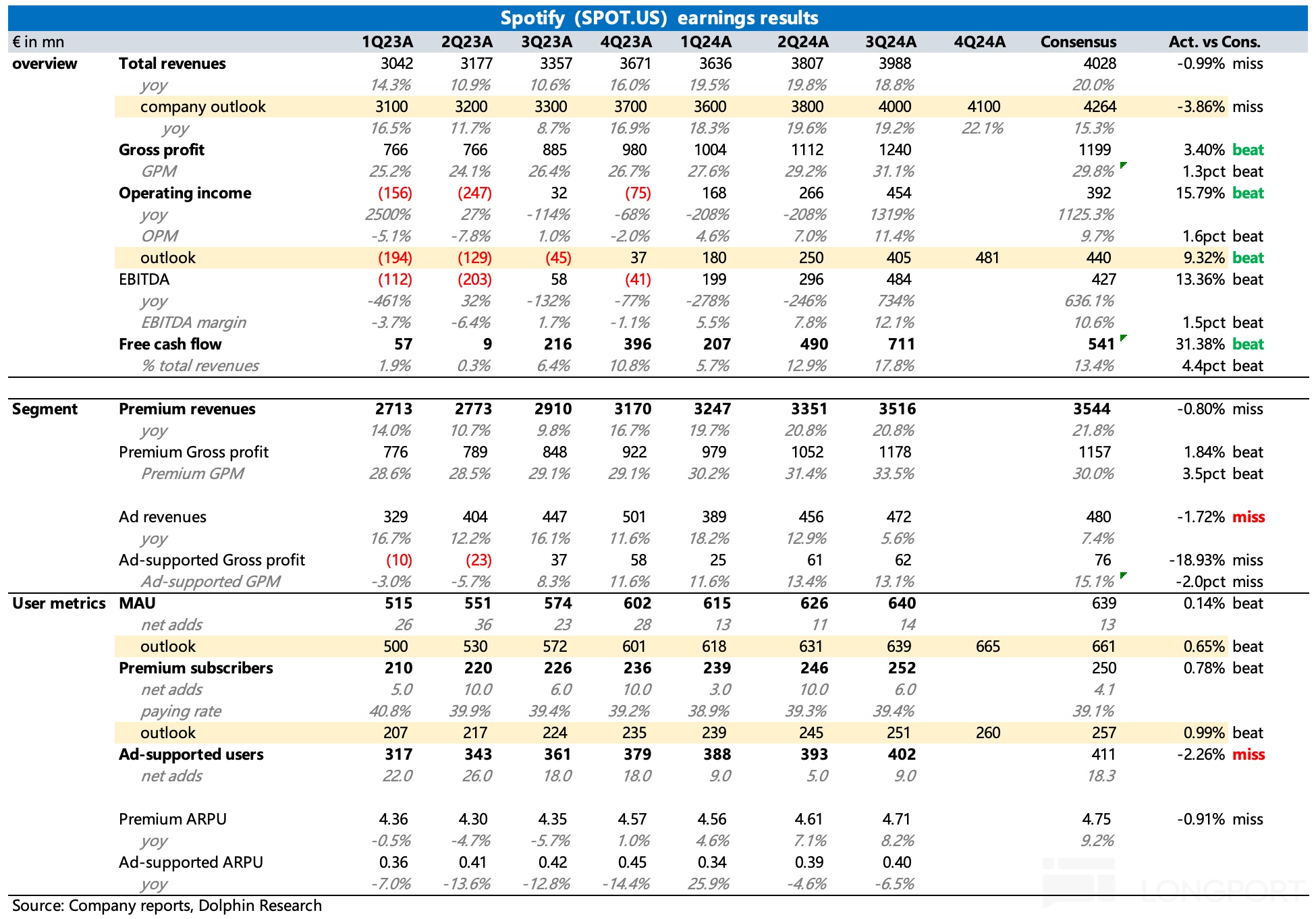 2024 年 7 月 23 日 2Q24 财报点评《Spotify:又爆拉了?音乐小巨头送标准答案》