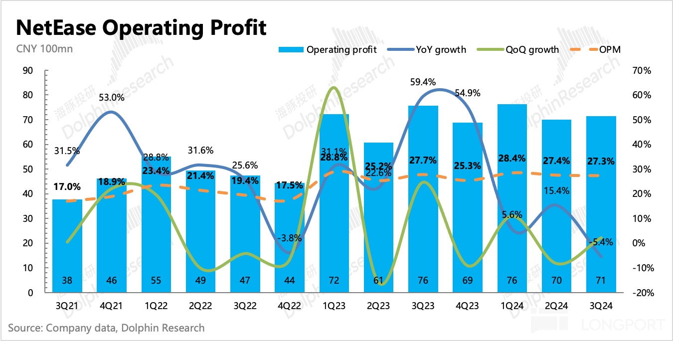当然网易今年以来,手游的问题更大一些。三季度是基数最高的季节,因此与去年相比直接同比了 9.7%。