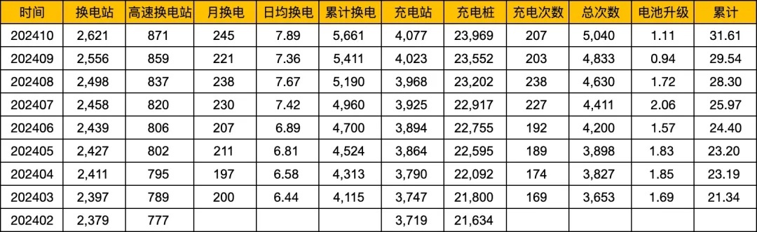 2621 座,其中高速换电站 871 座;最近 8 个月新增 240 座换电站,今年目标新增 1000 座,完成度很低。
