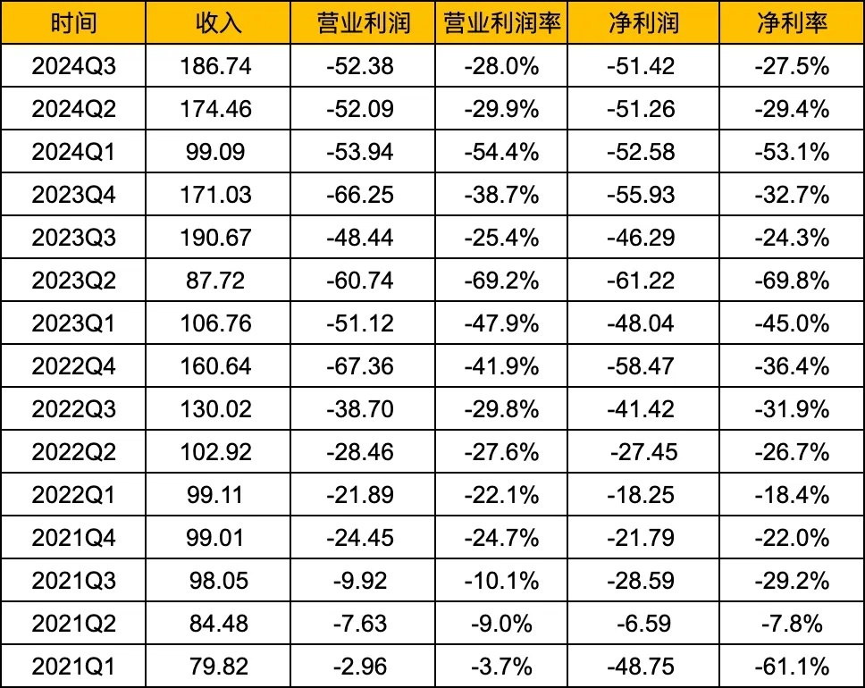 经营亏损 52.4 亿,经营亏损率-28%;净利润-51.4 亿,净利润率-27.5%。